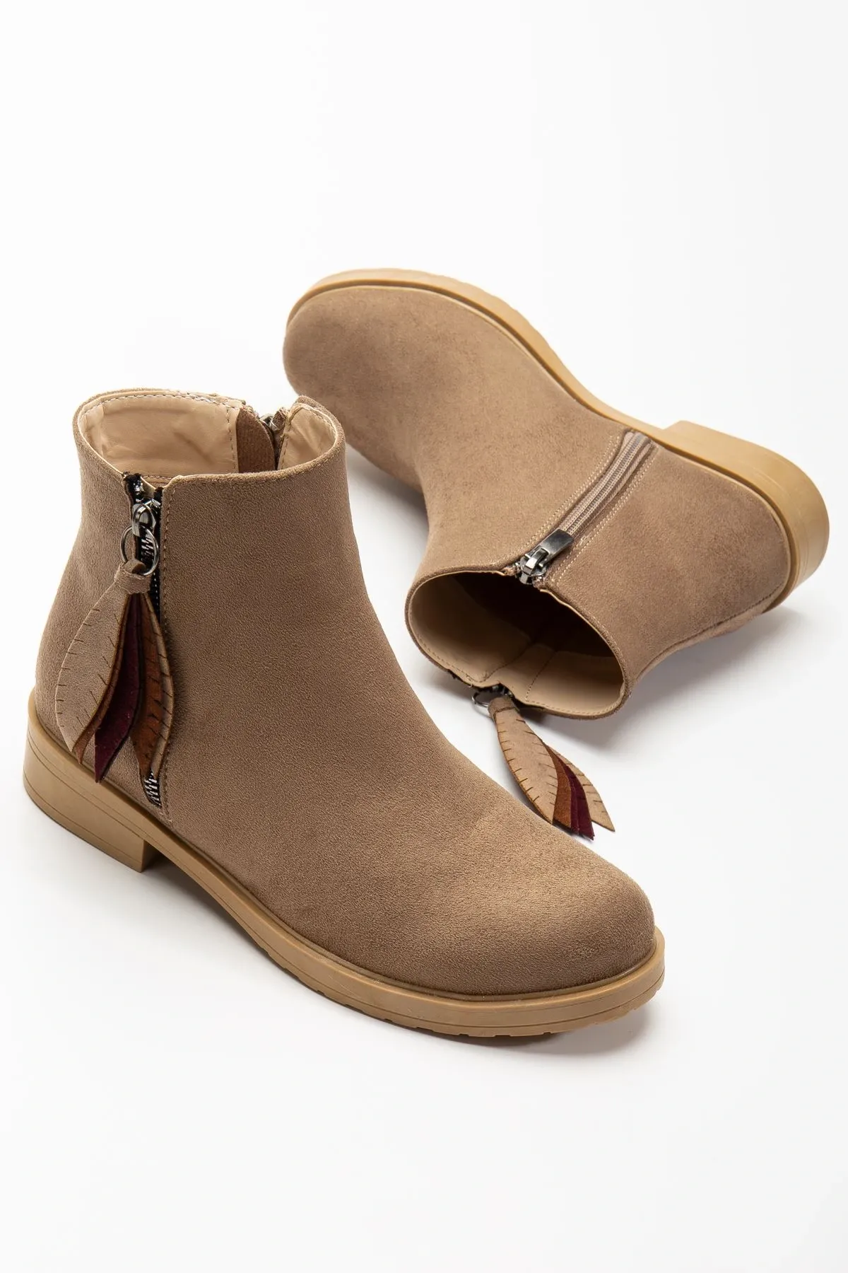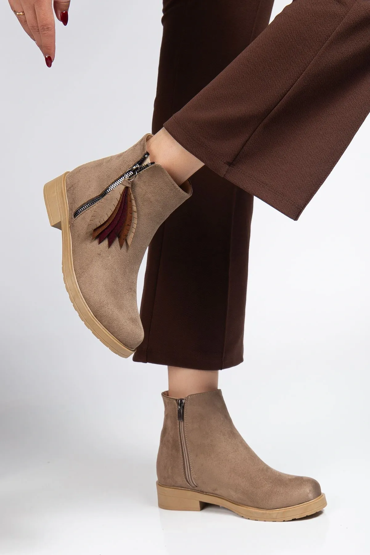 165-205 Vizon Süet Yaprak Desenli Fermuarlı Günlük Kadın Bot