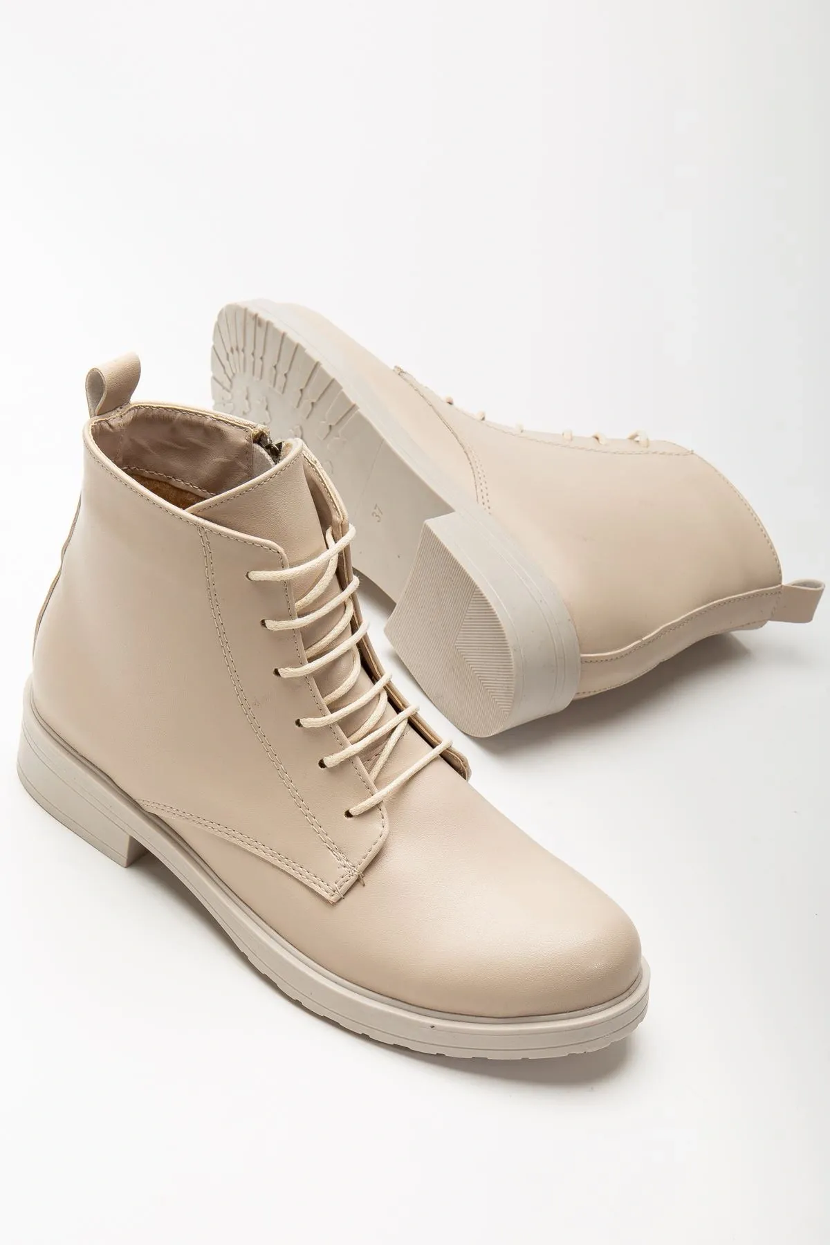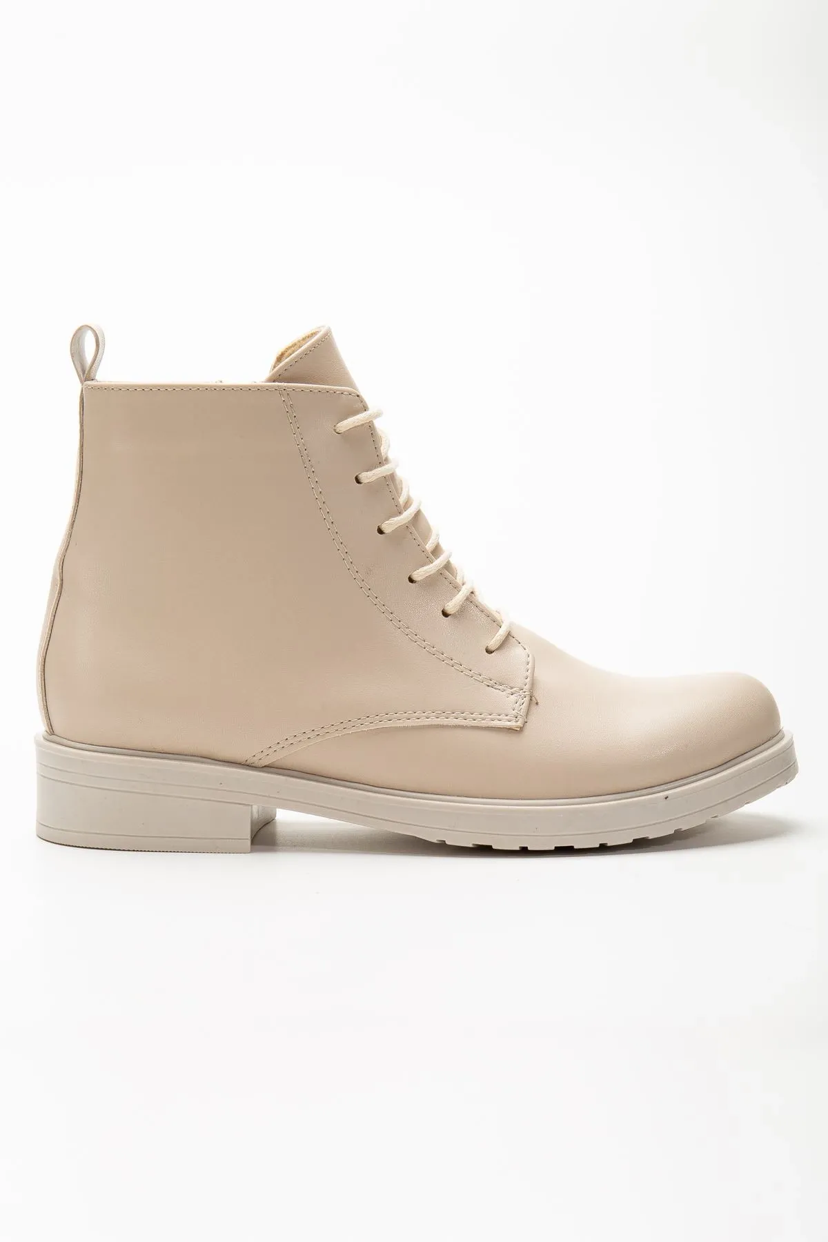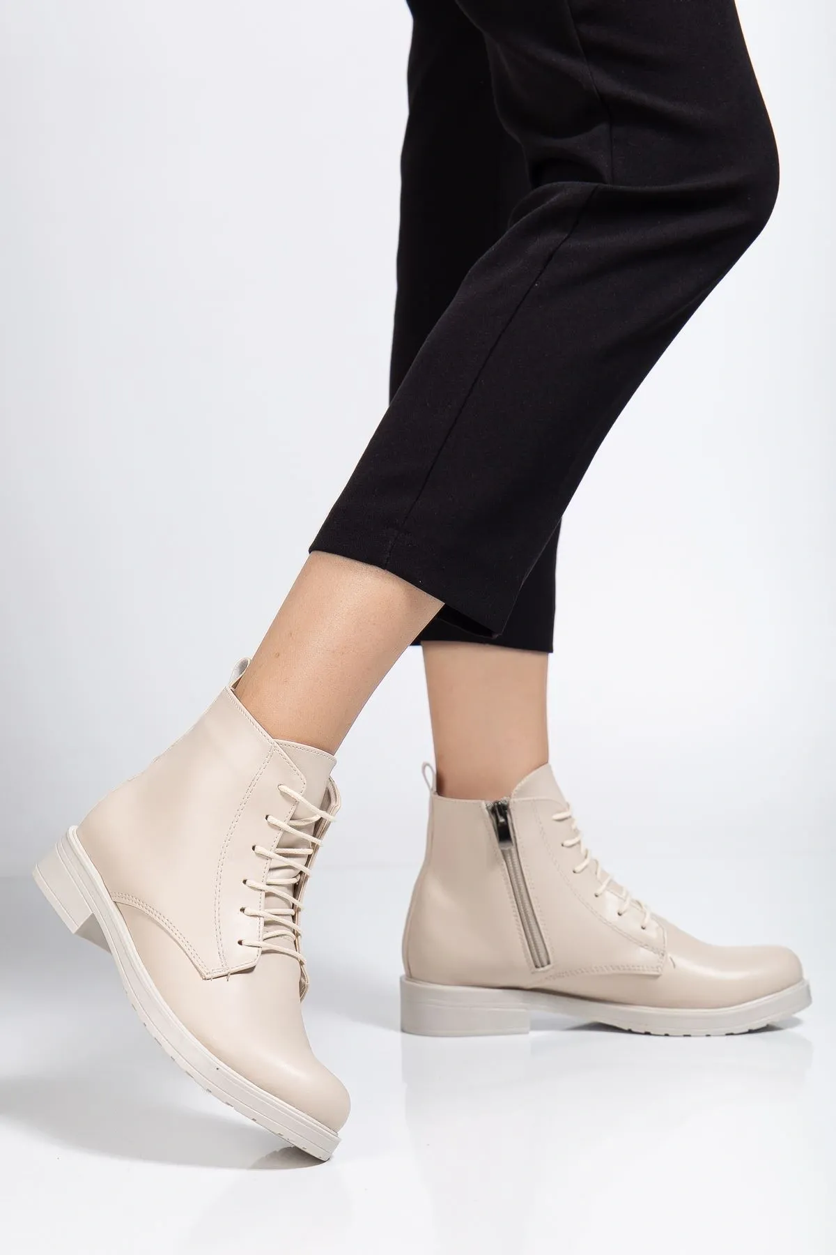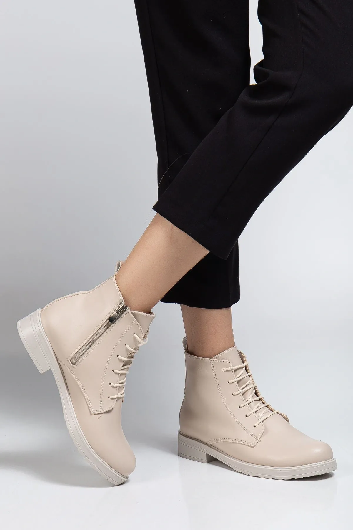 165-225 Bej Cilt Bağcıklı Fermuarlı Günlük Kadın Bot