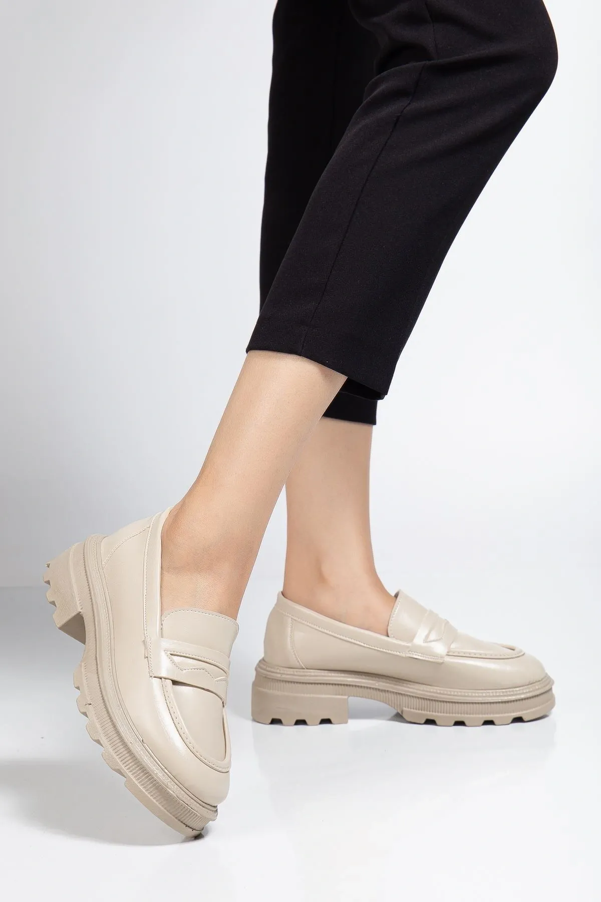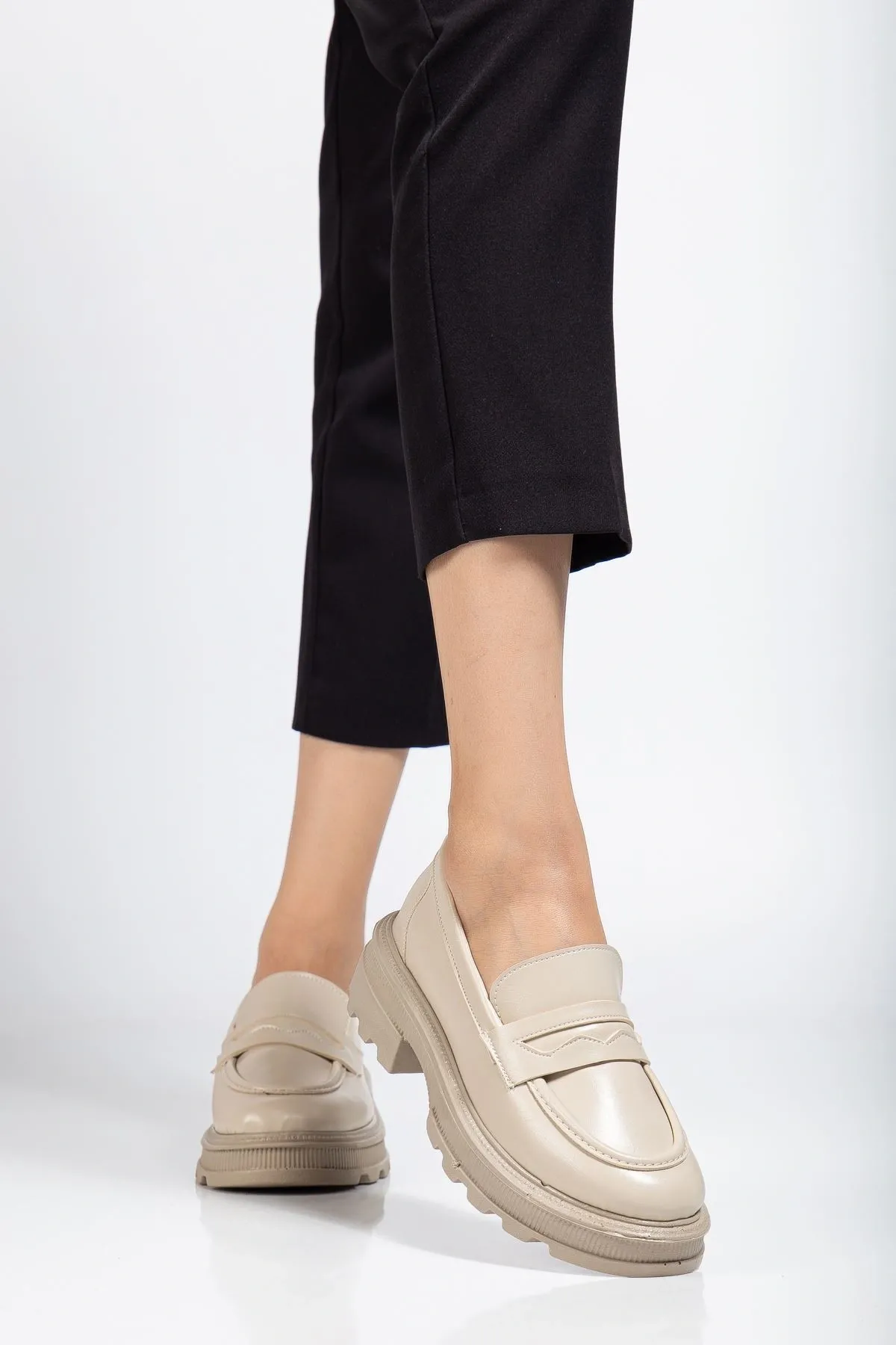 746-759 Bej Yanki Yüksek Tabanlı Loafer Ayakkabı