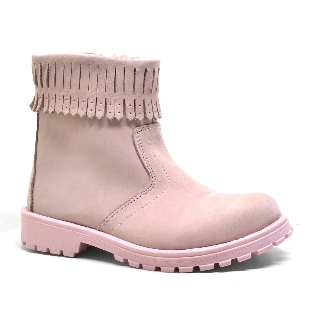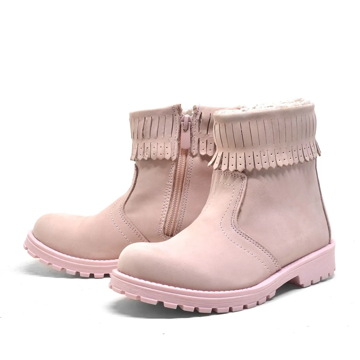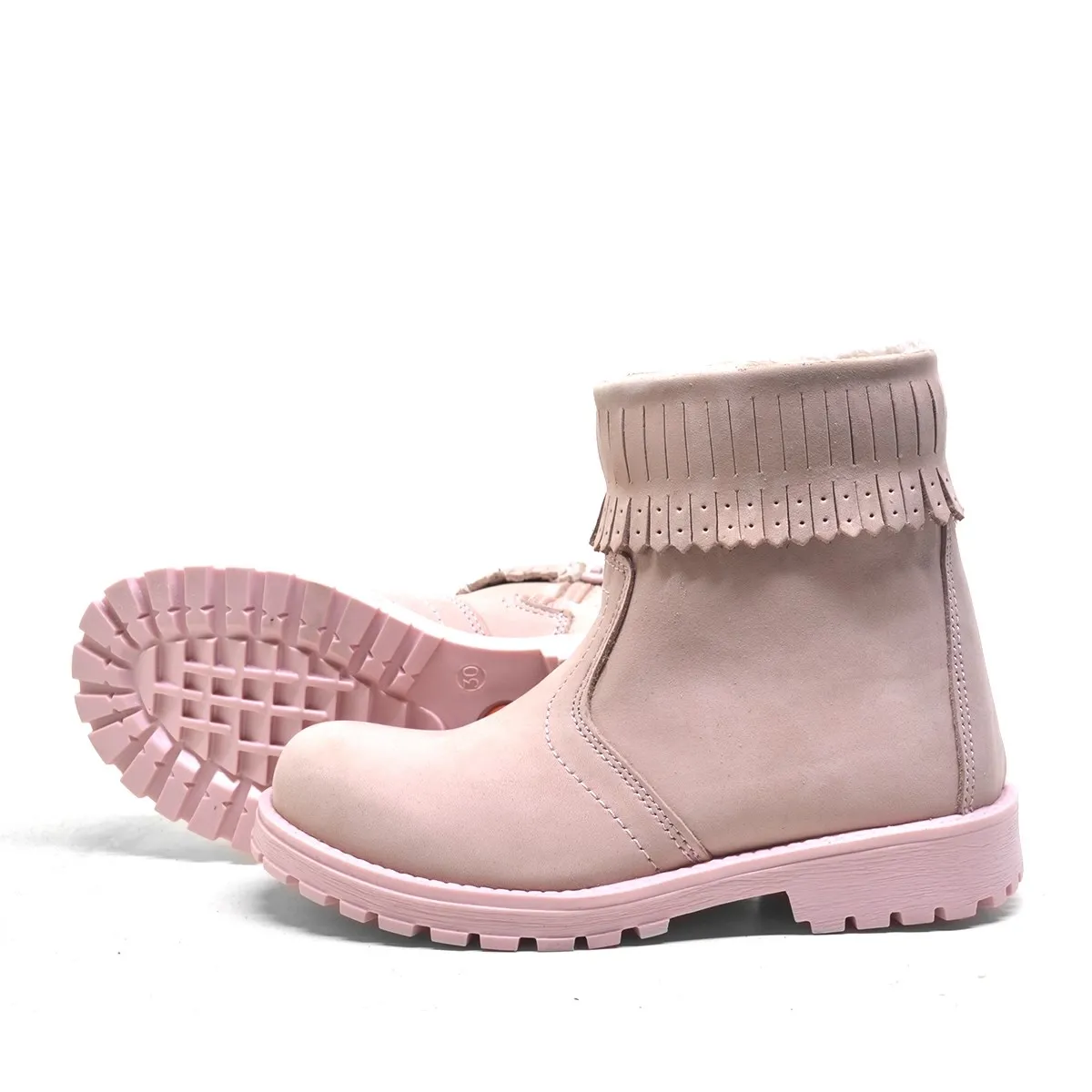 Chiron Hakiki Deri Pembe Fermuarlı Kız Çocuk Bot Çizme