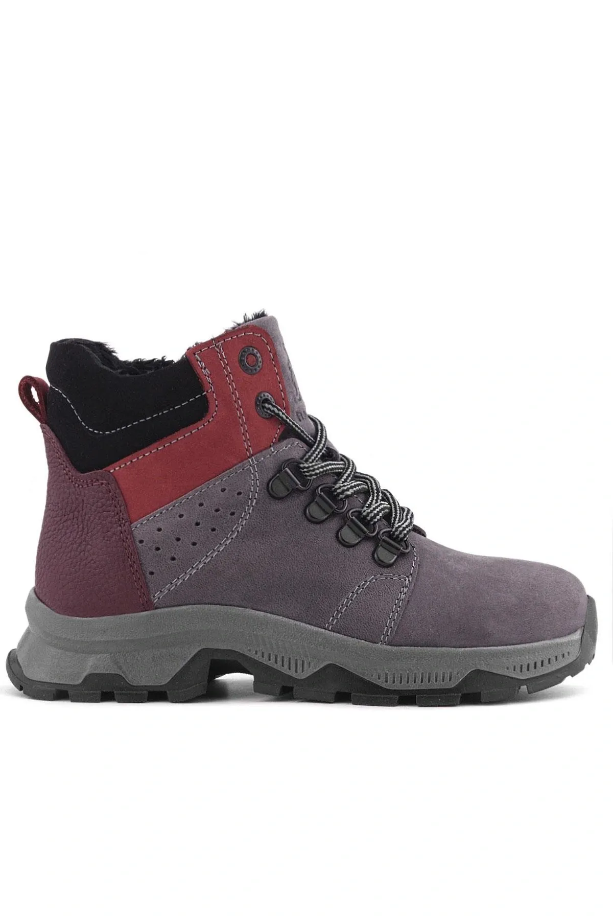 Hakiki Deri Gri Bordo Fermuarlı Trekking Çocuk Bot