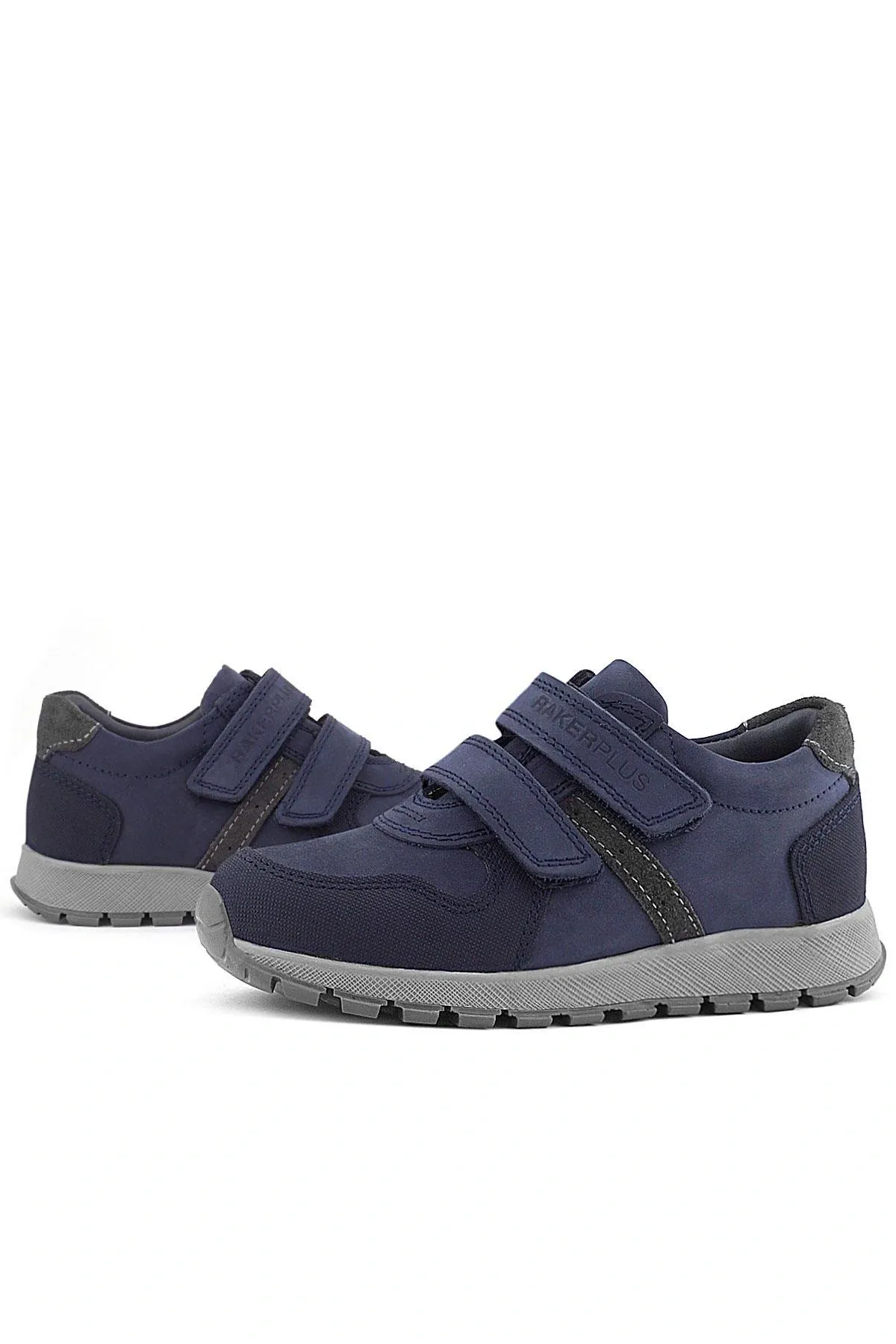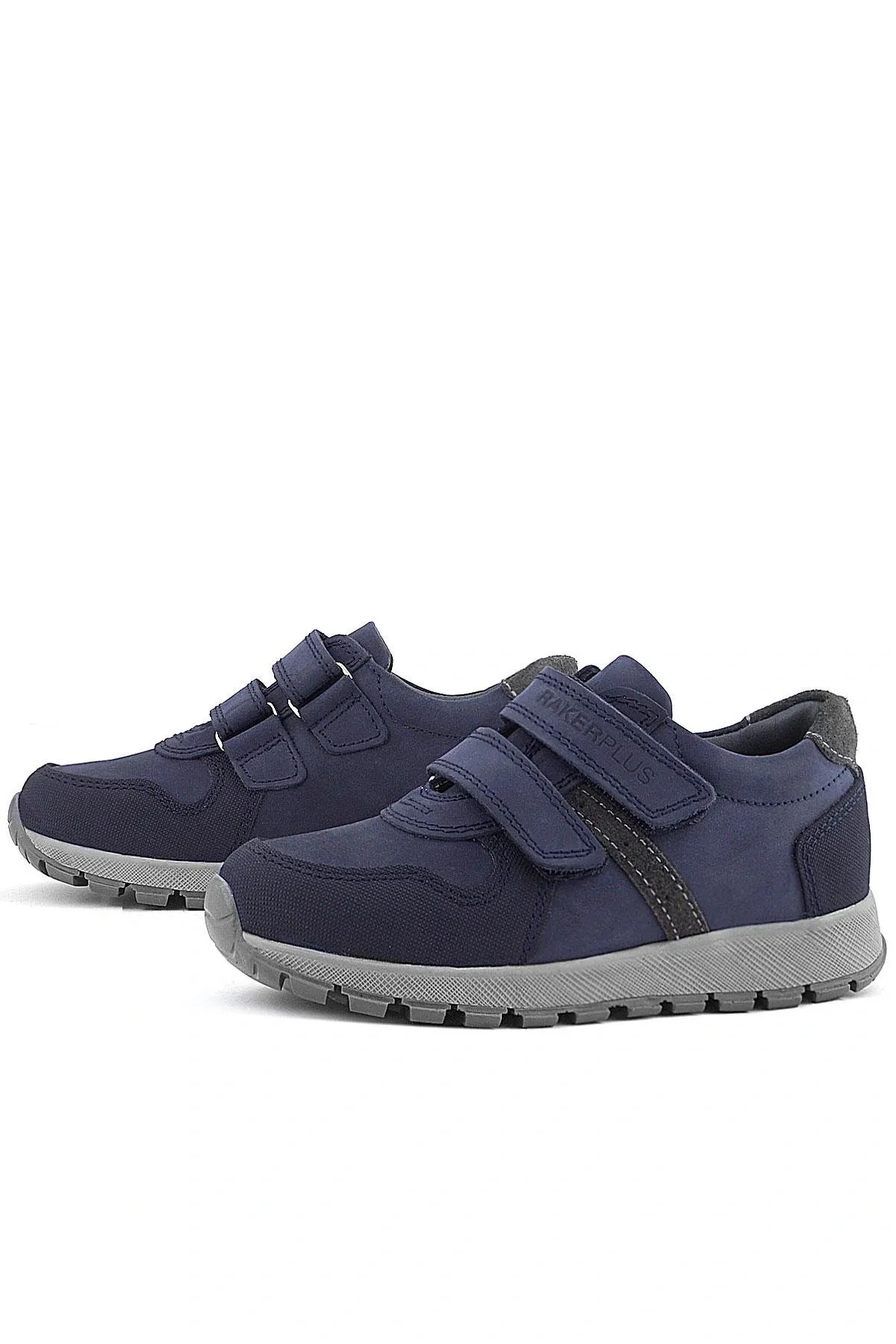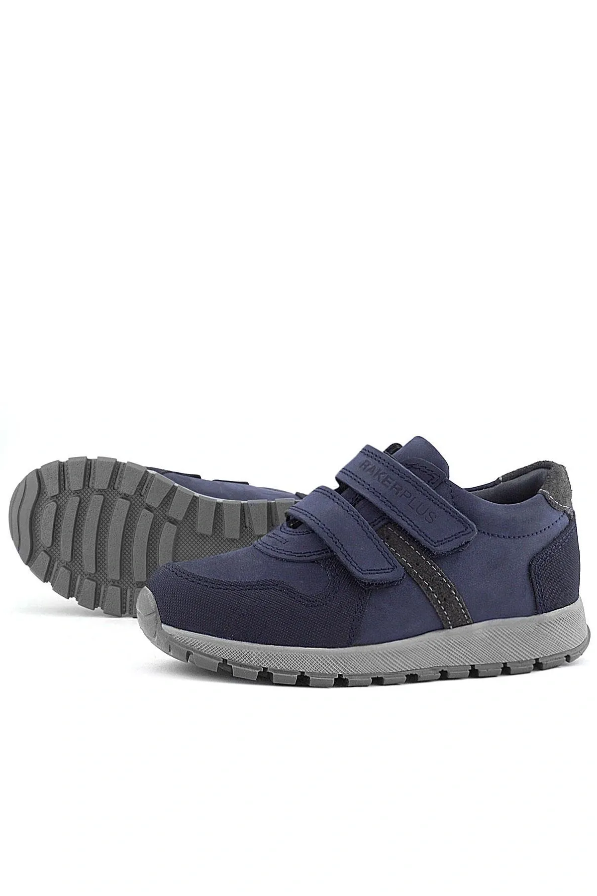 Hakiki Deri Lacivert Cırtlı Çocuk Spor Ayakkabı