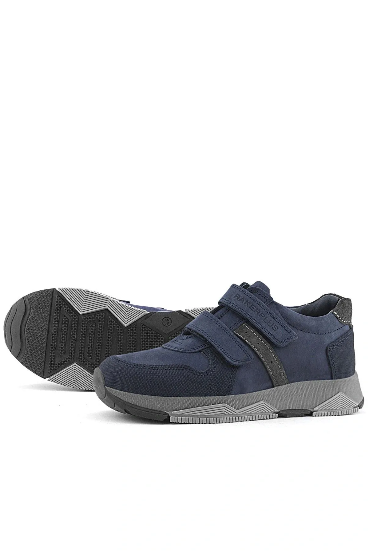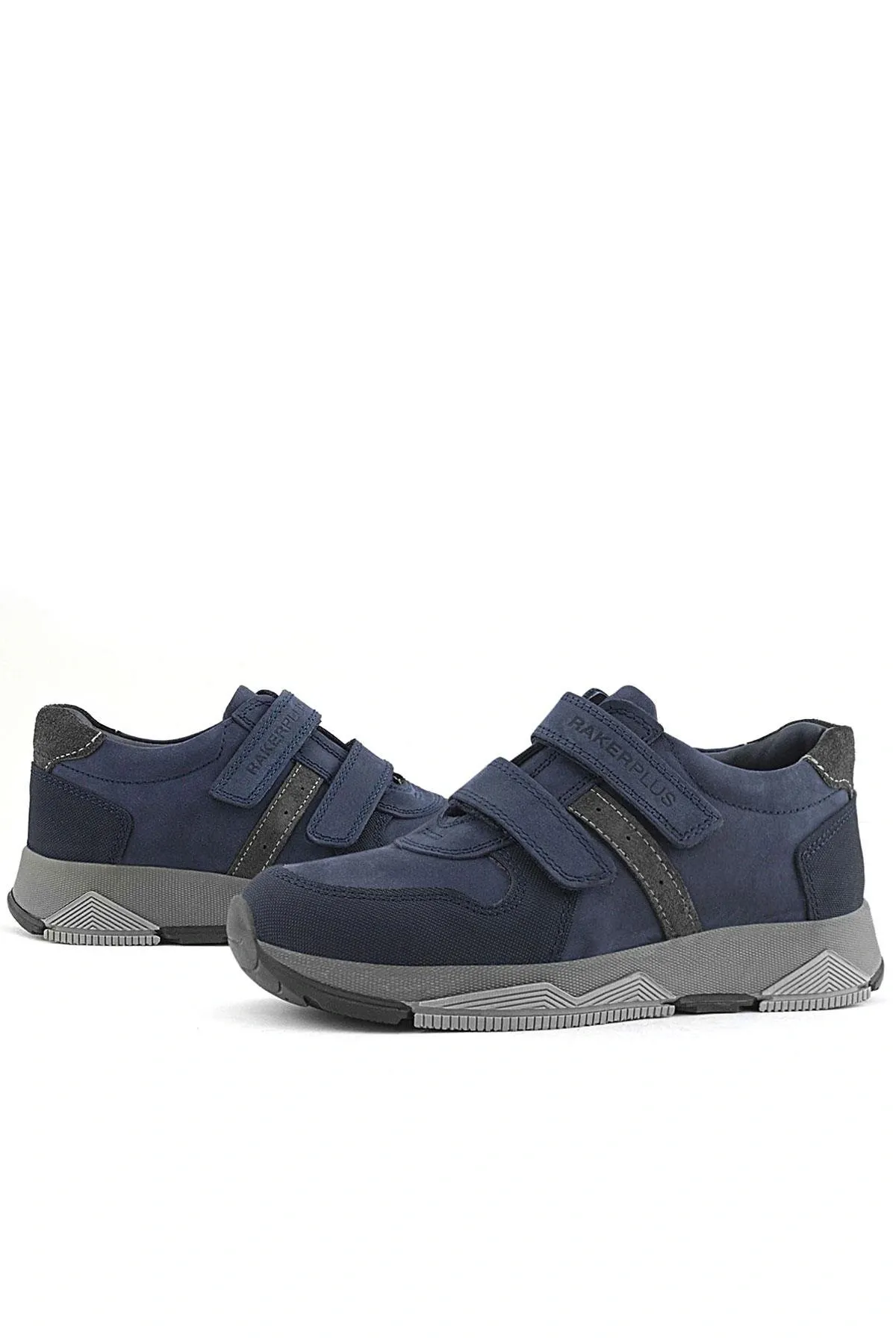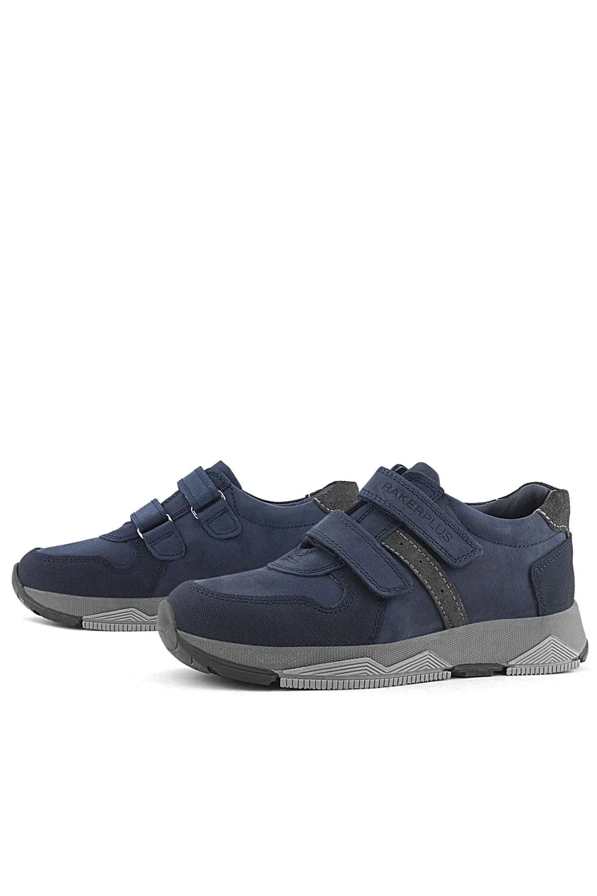 Hakiki Deri Lacivert Cırtlı Çocuk Spor Ayakkabı