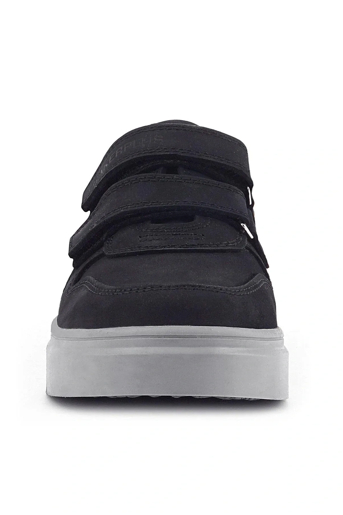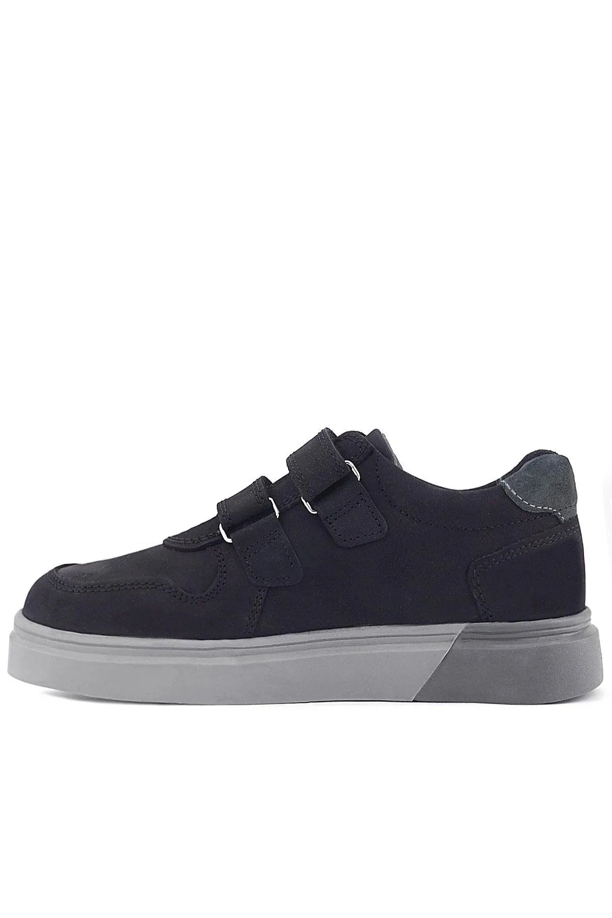 Hakiki Deri Siyah Nubuk Gri Cırtlı Erkek Çocuk Sneaker, Spor ve Günlük Ayakkabı