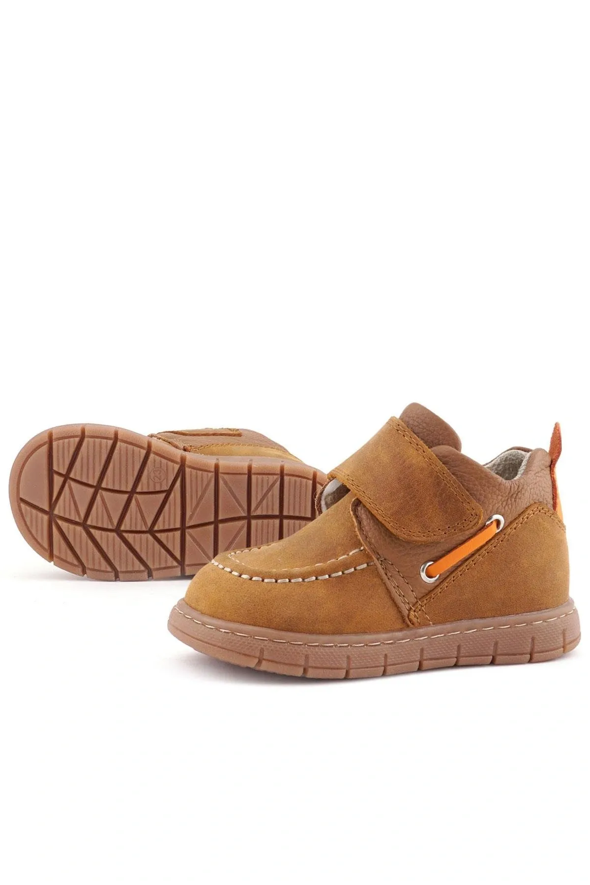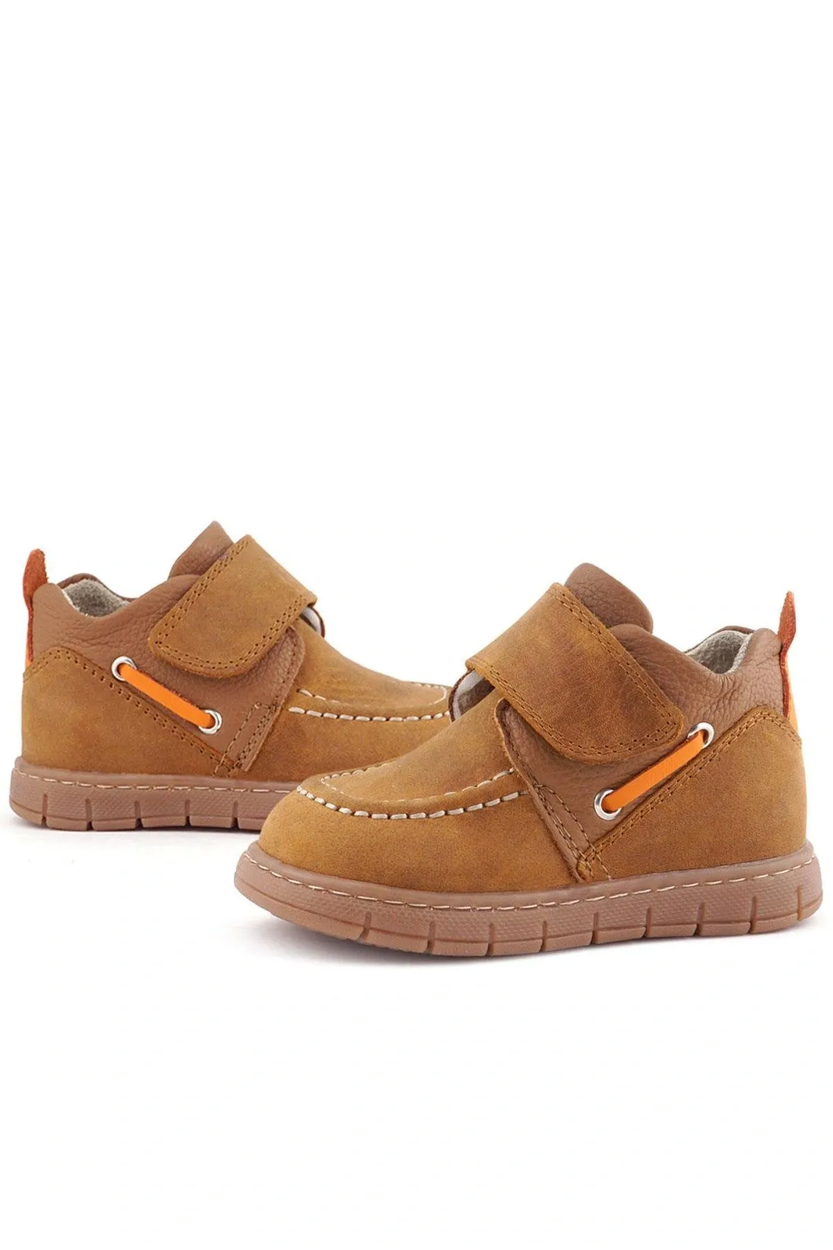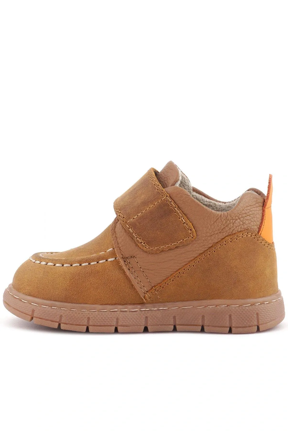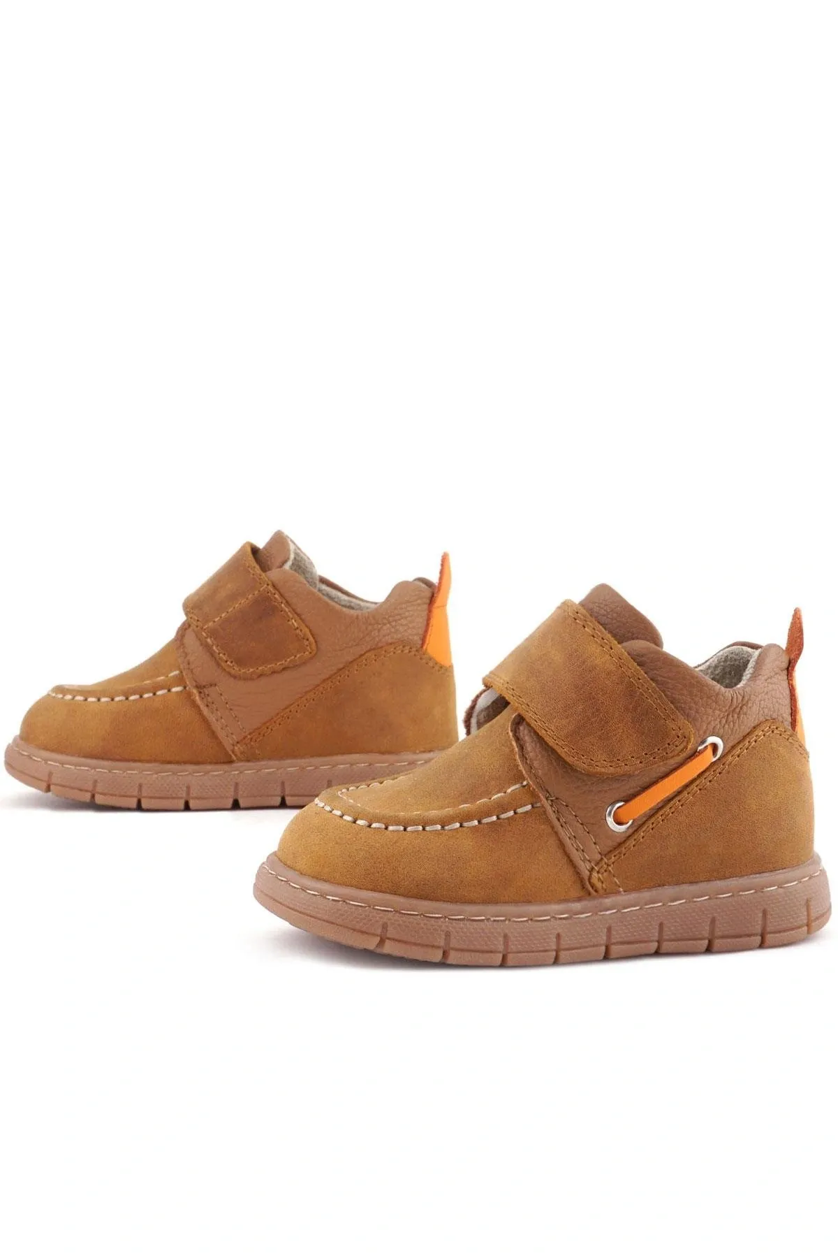 Hakiki Deri Taba Turuncu Cırt Cırtlı Bebek Bot, bebeğinizin ilk adımlarını güvenle atması için özenle tasarlanmıştır. %100 hakiki deri yüzeyi ve yumuşak astarı sayesinde bebeğinizin hassas cildine zarar vermezken nefes alabilen yapısıyla gün boyu konfor sağlar. Esnek ve hafif taban yapısı, doğal ayak hareketlerini destekleyerek rahat bir kullanım sunar. Pratik cırt cırtlı kapama sistemi, giydirme ve çıkarma sürecini kolaylaştırır. Kaymaz tabanı sayesinde hem iç hem dış mekânda güvenli adımlar atılmasına yardımcı olur. Şık taba tonlarıyla modern, sevimli ve kullanışlı bir tasarıma sahiptir.