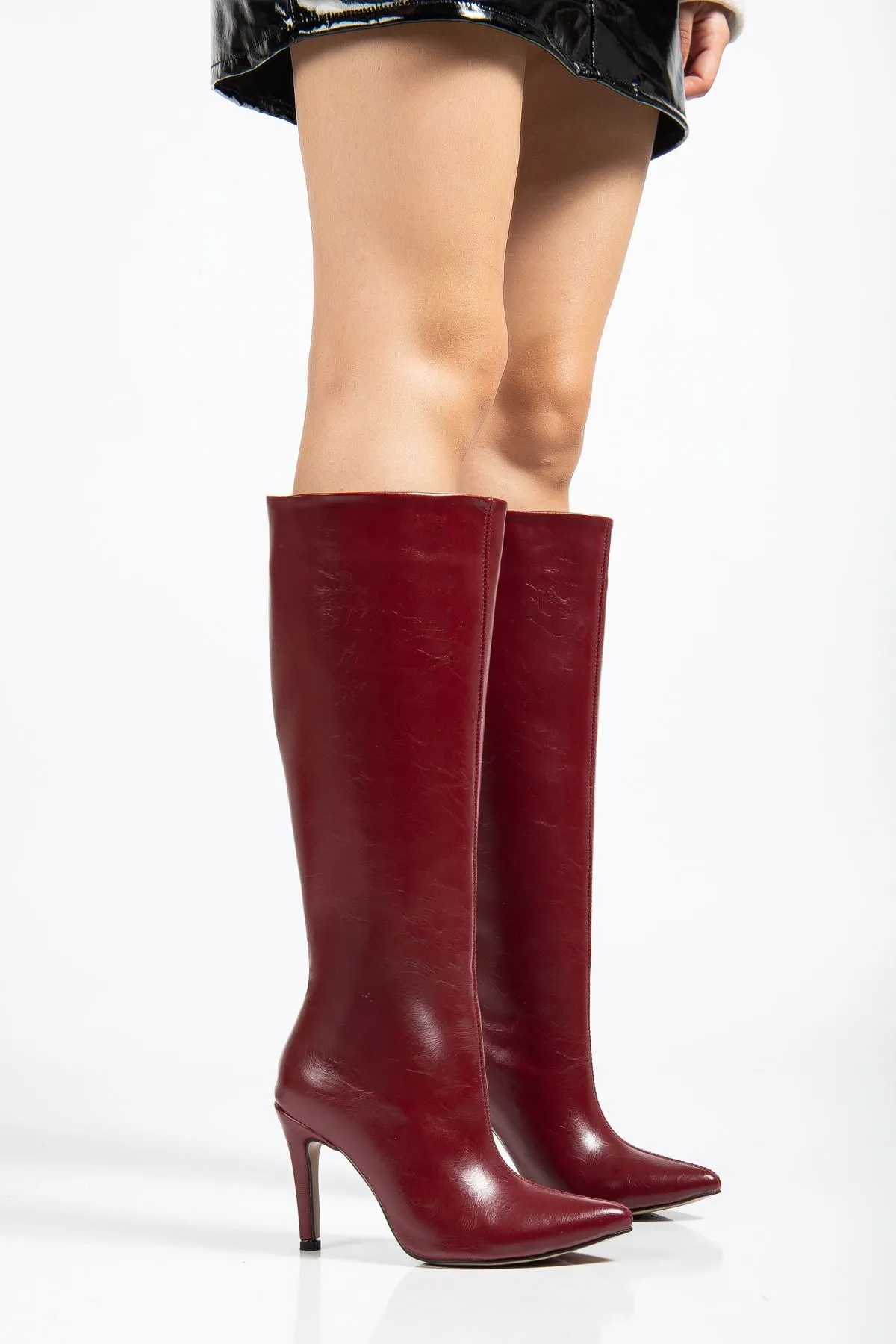 Syt-2004 Bordo Kırışık Rugan Günlük Bayan Çizme