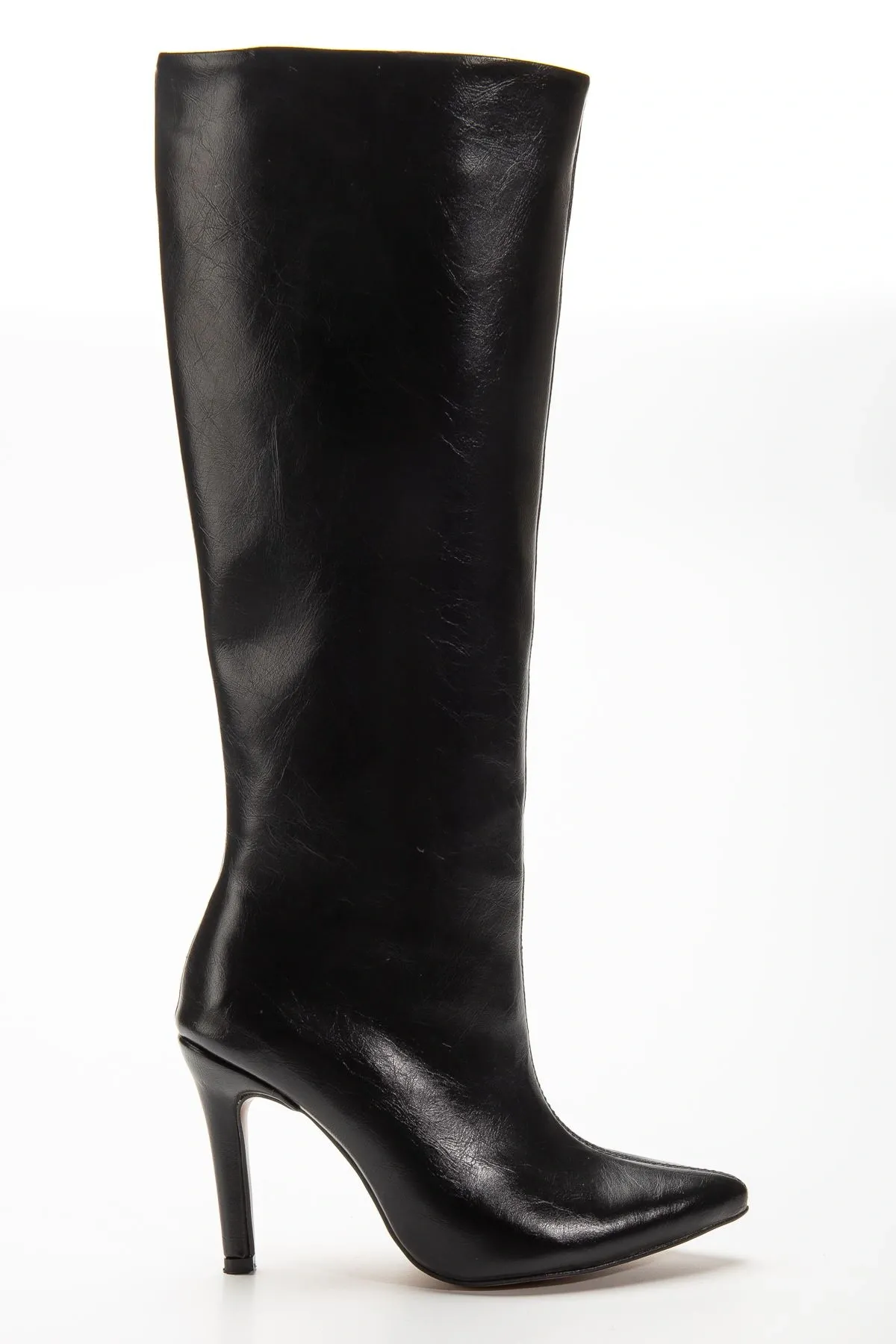 Syt-2004 Siyah Kırışık Rugan Günlük Bayan Çizme