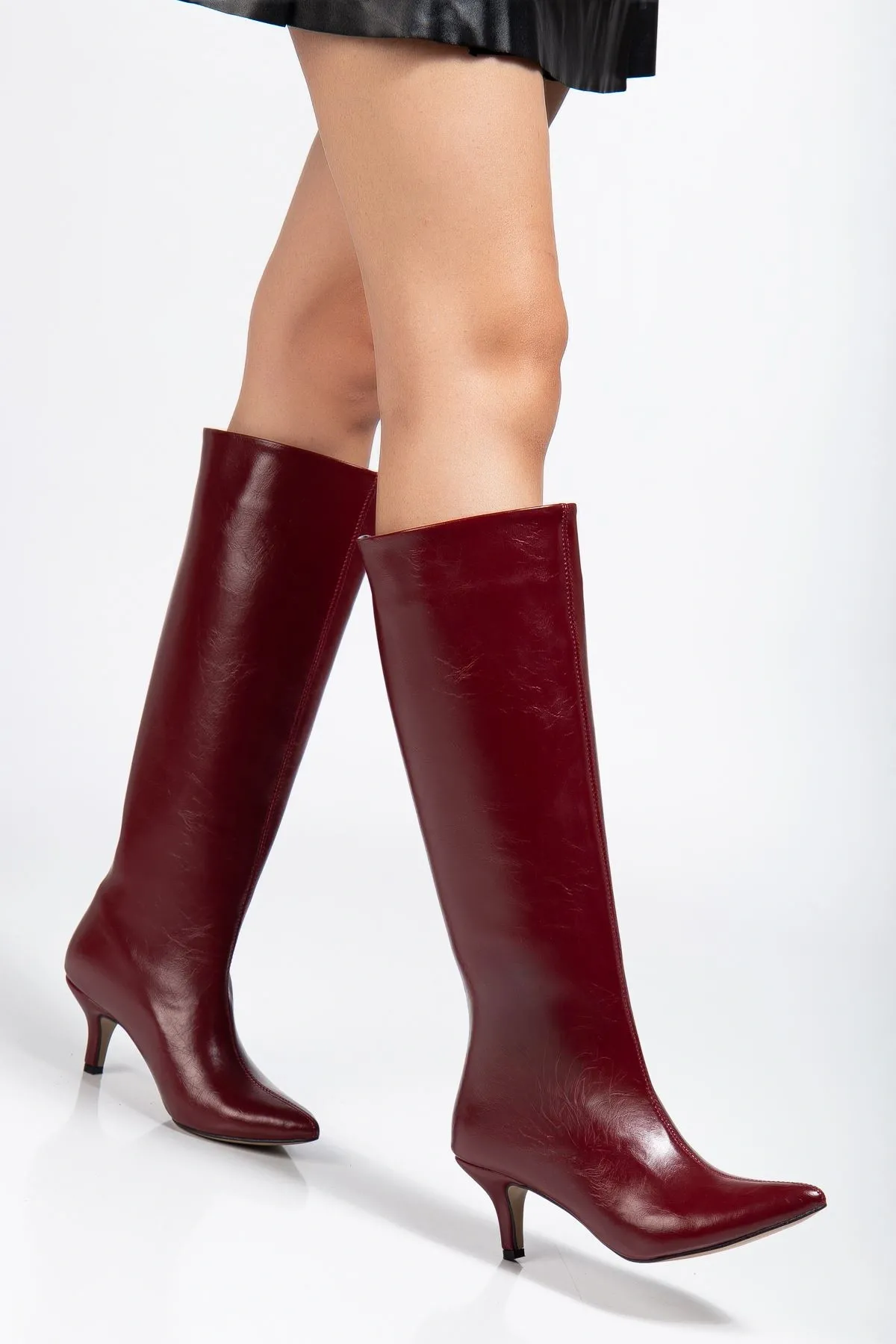 Syt-2025 Bordo Kırışık Rugan Günlük Kadın Çizme