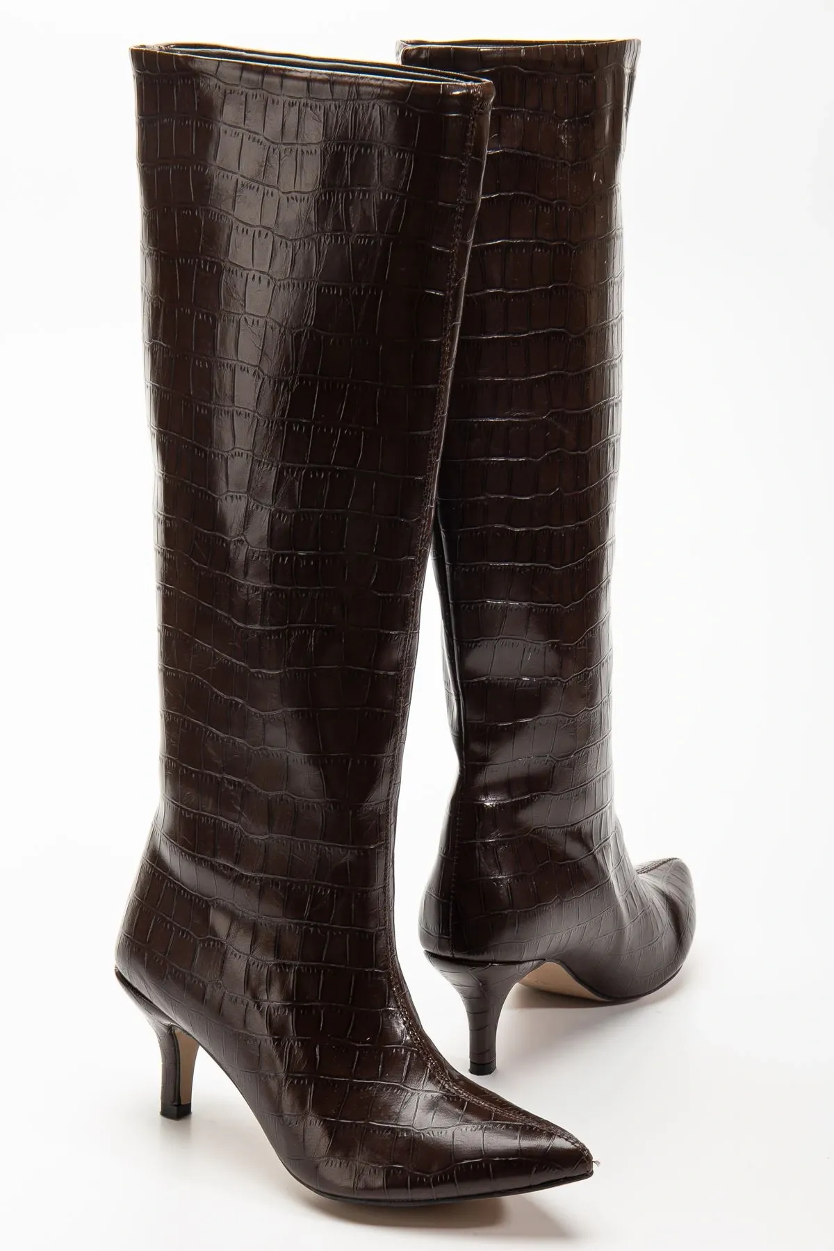 Syt-2025 Kahve Kroko Günlük Kadın Çizme