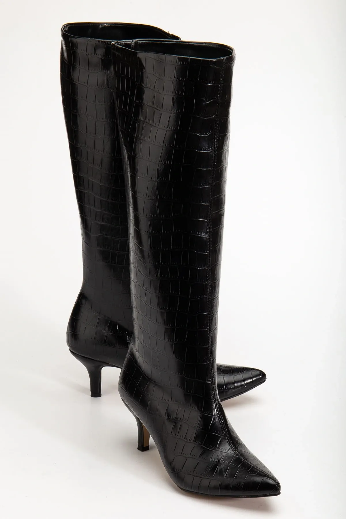 Syt-2025 Siyah Kroko Günlük Kadın Çizme