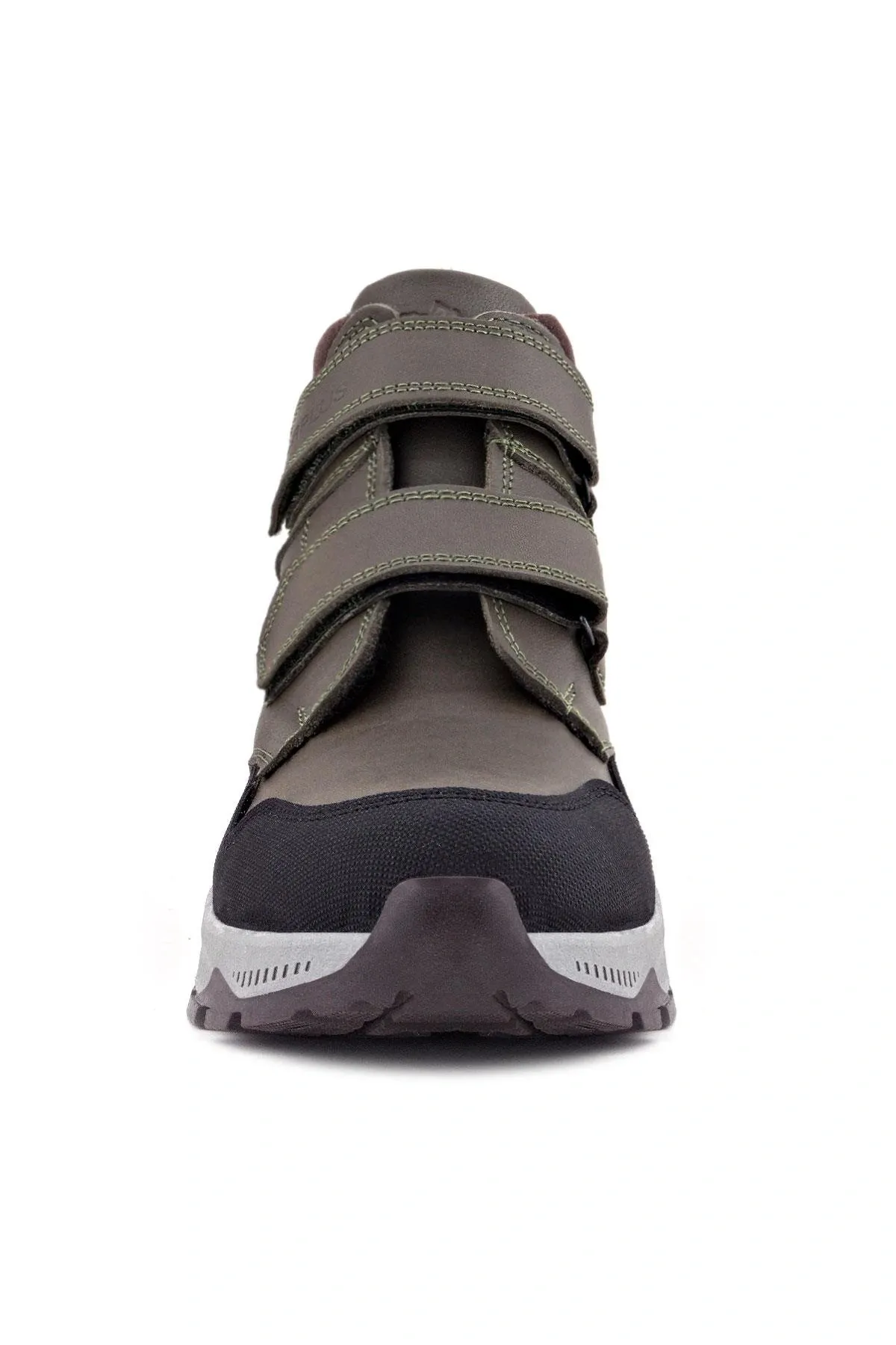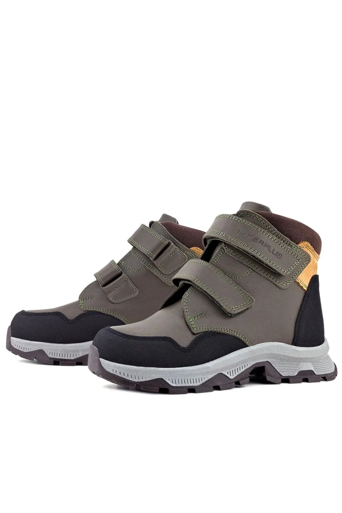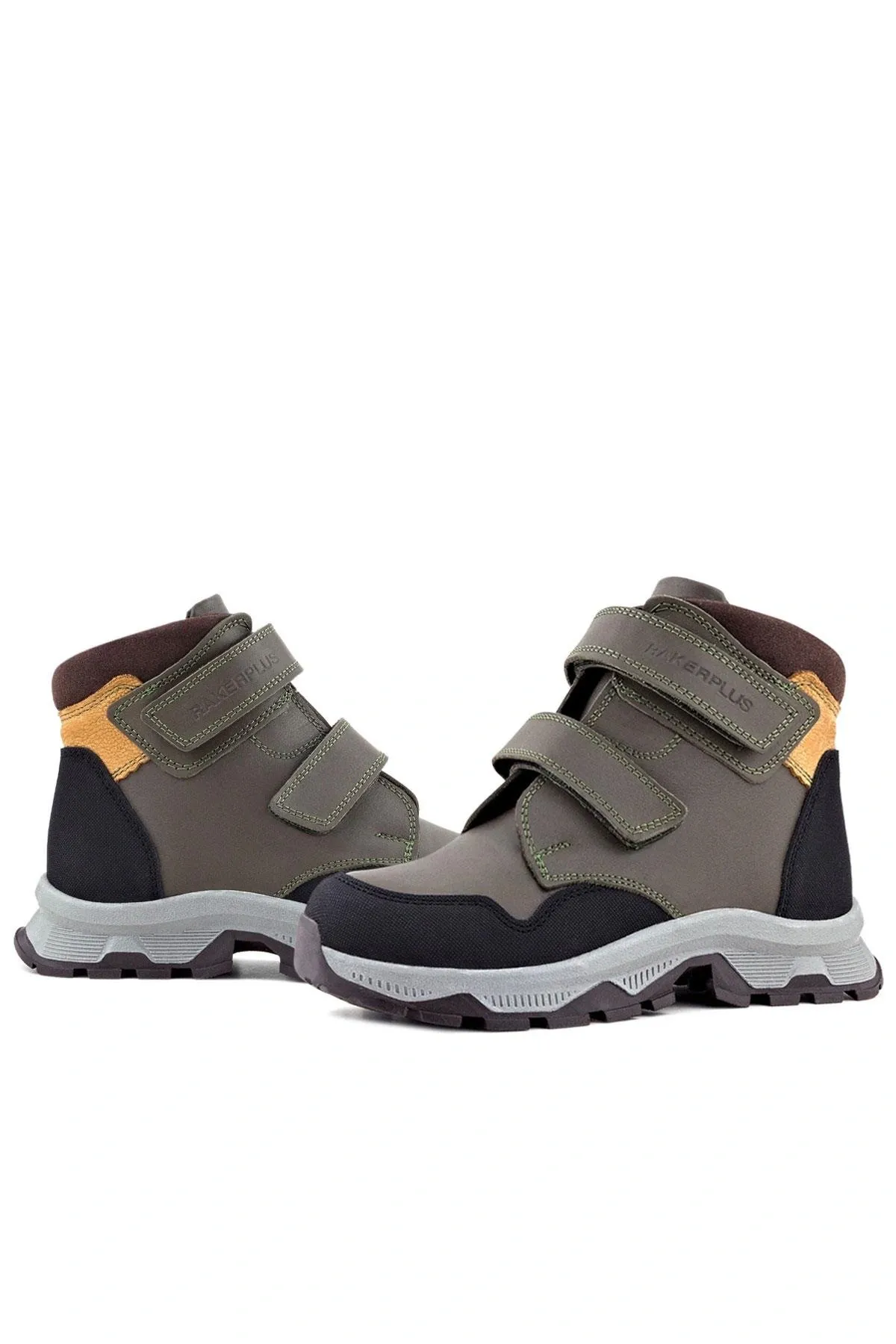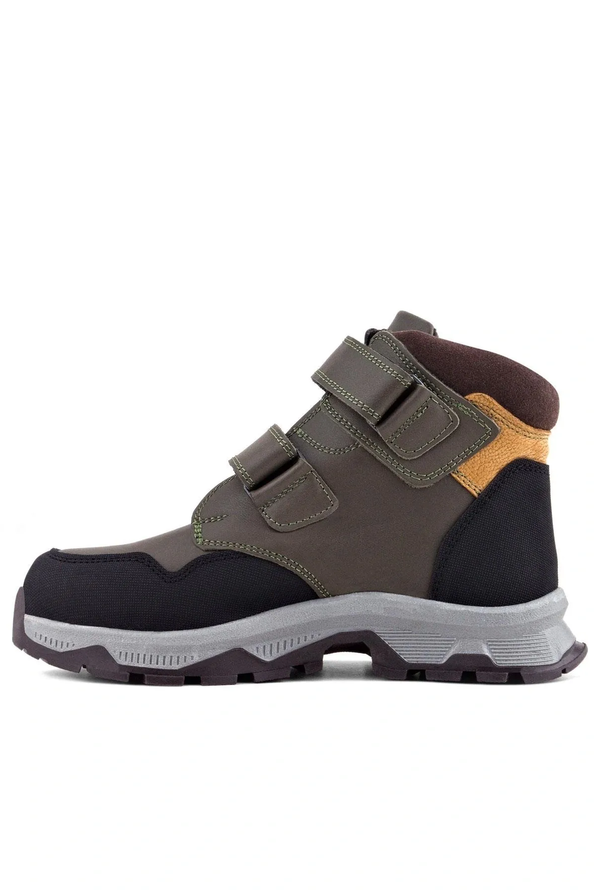 Trekking Hakiki Deri Haki Yeşil Sarı Cırt Cırtlı Erkek Çocuk Bot